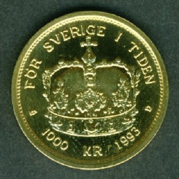 Sverige, 1000 kr GULD 1993 UNC - 20-års regering jubilæum