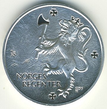 Norge, Norges Regenter, "Haakon VII 1905-57". Fremstillet af 925-sølv og vejer brutto 33,85 gr.
