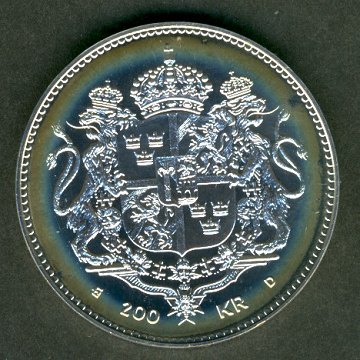 Sverige, 200 kr STERLINGSØLV 1993 UNC - Dronning Silvias 50-års fødselsdag