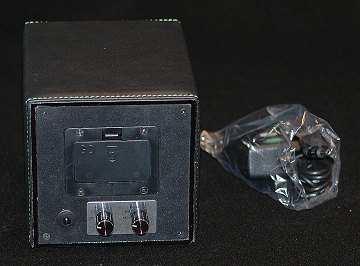 Uret holdes i urbevægeren igang ved løbende at blive bevæget. Fungerer dels med batteridrift og med medfølgende strømforsyning. Fremstillet af læderbetrukket træ. Ny og ubrugt.