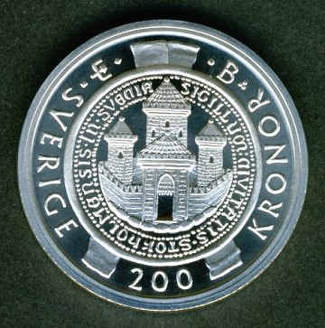 Sverige, 200 kr STERLINGSØLV 2002 UNC - Stockholms 750 års jubilæum