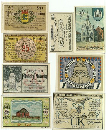 Samling sønderjyske nødpengesedler - 8 stk. ucirkulerede