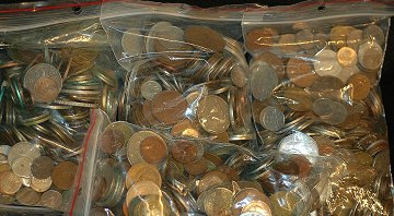 Stor lot "Hele Verden"-mønter - ca. 10,5 kg!