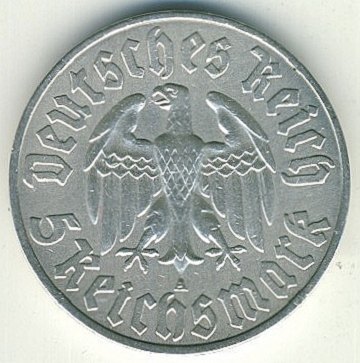 Tyskland, 5 reichsmark SØLV 1933A - KM 80 "Martin Luther"
