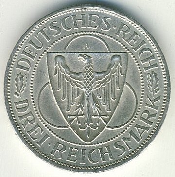 Tyskland, 3 reichsmark SØLV 1930A - KM 70