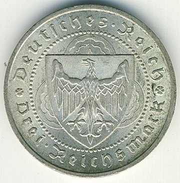 Tyskland, 3 reichsmark SØLV 1930A - KM 69