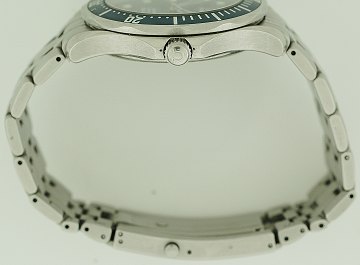 Herrearmbåndsur fra Omega, model Seamaster Professionel Chronometer, m. urkasse og integreret lænke af delvis blankt og satineret stål, blå urskive med bølgestreger og fluoriserende punktinddeling, sekundviser og datogengivelse, safirglas og marineblå lynette, quartzurværk, vandtæt til 300 m. Ø 46 mm.