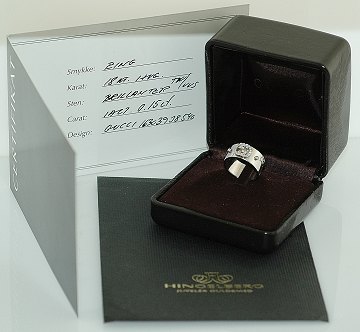 Ring af 18 kt. hvidguld fra Gucci, prydet m. talrige brillantslebne diamanter på ialt ca. 0,15 ct. TW/VVS. Stemplet "Gucci 750". Str. 53 1/2.