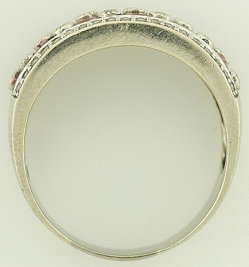 Ring af 14 kt. hvidguld, prydet m. talrige brillantslebne diamanter på ialt ca. 0,25 ct. samt facetterede lyserøde safirer. Str. 62 1/2.