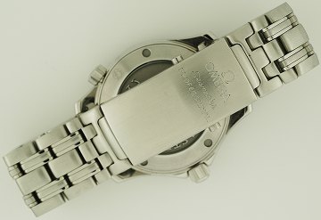 Midsize ur fra Omega, model Seamaster Professional, m. kasse og lænke af stål, sort, bølget skive m. streg- og punktindeks, datoangivelse ved 3" position, safirglas, sort lynette, quartz urværk. Ø. 37 mm.