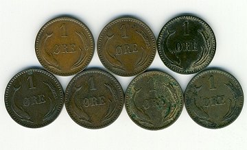 Christian IX, 1 ører 1889, 1891, 1894, 1897, 1899, 1902 samt 1904 - H. 19A & B
