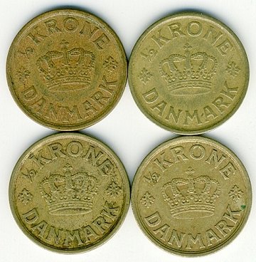 Christian X, 1/2 kroner 1924,-25,-26 og 1940 - H. 22A & 22B