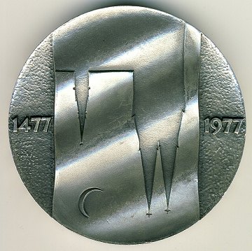 Svensk medaille af finsølv, præget i anledning af 500 året for universitetet i Uppsala 1477-1977, udført hos Svenska Medaljgillet som "Årets Medalj 1977".