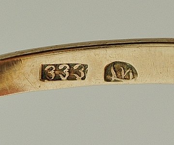 Ældre ring af 8 kt. GULD prydet m. facetslebne granater