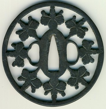 Rund tsuba af jern smedet m. stiliseret bladværk, Japan 18/19 årh. Ø. 85 mm.