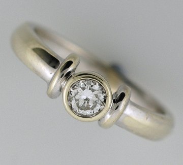 Brillantring med skinne i forløb, dekoreret med brillant på ca. 0,30 ct. Ring str. 51.