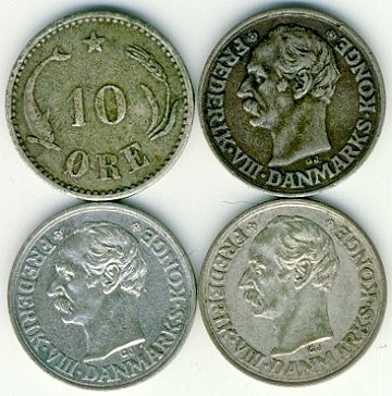 Lot m. 10 ører SØLV 1905,-07,-12,-15
