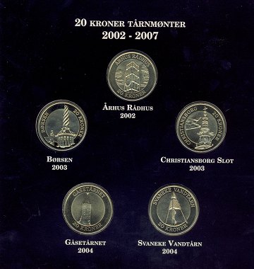 Kgl. Møntsæt, Tårnmønter 2002-2007 10 stk. danske 20 kroner