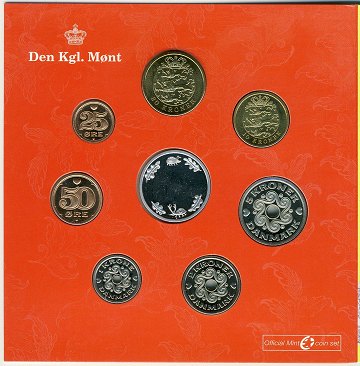 Møntsættet indeholder: 25 øre, 50 øre, 1 kr, 2 kr, 5 kr, 10 kr, 20 kr samt specialfremstillet medaille.