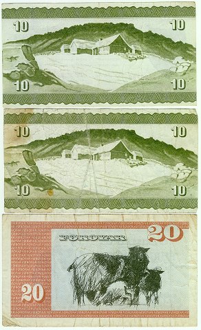 Fĉrĝerne, 10 krónur 1974(2) & 20 krónur 1986