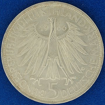 Tyskland, 5 mark SØLV 1966D - KM 119.1