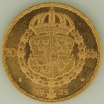 Sverige, Gustav V, 20 kr 1925 W GULD - KM 800