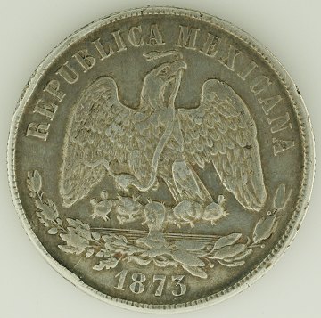 Mexico, peso 1873 Oa E SØLV - KM 408.6