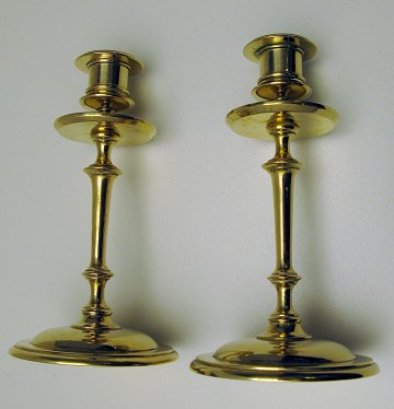 Par stager af messing på rundt, gradueret fod, profileret stamme med manchet. L. 16,5 cm. Frankrig 20. århundredes begyndelse.