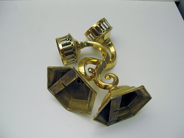 Par elegante vægstager på ligeknækket fod, herover svejfet og profileret stamme. Manchet med gennembrudt gallerikant. L. ca. 20 cm. 19. årh. slutning.