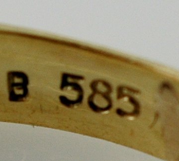 Ring af 14 kt. guld, dekoreret med ovalt facetteret rubin på ca. 7 x 4 mm., ydermere omkranset af talrige små diamanter. Ring str. 51, totalvægt ca. 3,5 gr.
