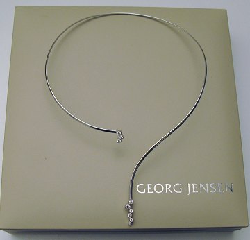 GJ 18 kt. whitegold necklace, decoreted with 9 brillant cut diamonds, all in all 0,77 ct.