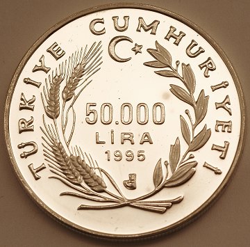 Tyrkiet, 50.000 lira SØLV 1995 Proof - KM 1038