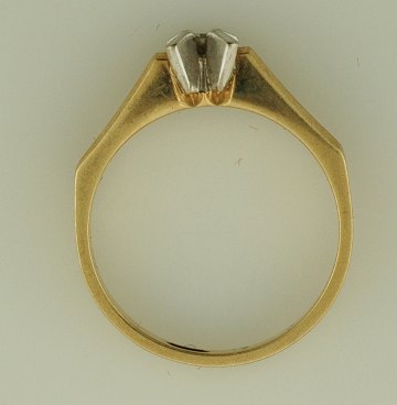 Ring af 14 kt. guld med struktureret skinne, dekoreret med flot brillant på 0,04 ct., Top Wesselton si. Totalvægt ca. 3,30 gr.