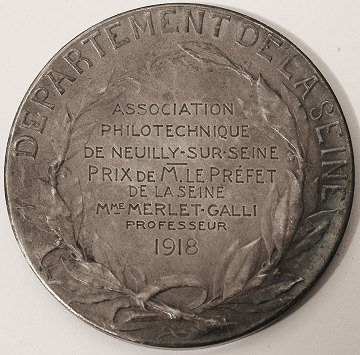 Fransk medaille af sølv, akademisk pris, 1918. Ø. 50 mm.