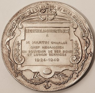 Transatlantisk Kompagni - Stor fransk medaille af SØLV, 1949