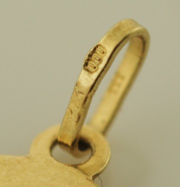 Vedhæng af 8 kt. guld, dekoreret med tyrens tegn. Diam. ca. 12,5 mm. Vægt 0,62 gr.