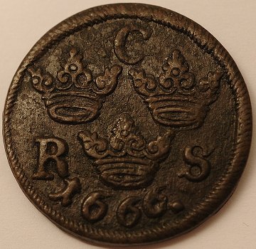 Sverige, Karl XI, 1/6 øre 1666 S.m. - KM 254 Avesta