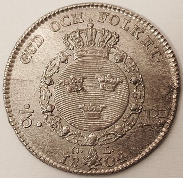 Sverige, Gustav IV Adolf, 1/6 riksdaler 1804 OL - KM 560