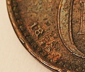Man har desværre forsøgt at rense mønten for at få det sidste tal i årstallet til at fremstå klarere og har dermed påført mønter ridser deromkring.