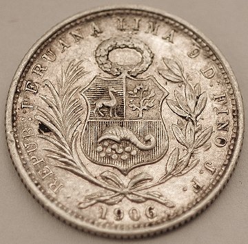 Peru, 1/5 sol SØLV 1906 JF - KM 205,2