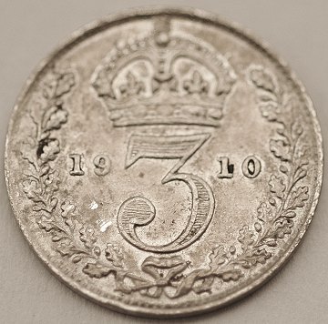 England, Edward VII, 3 pence SØLV 1910 - KM 797.2