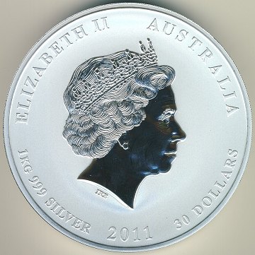 Australien, 30 dollars FINSØLV 2011 - 1 kg "Year of the Rabbit"