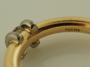 Ring af 18 kt. guld med conkav skinne, dekoreret med brillant 0,23 ct. i russisk slibning. Ring Str. 54, totalvægt ca. 6,86 gr.