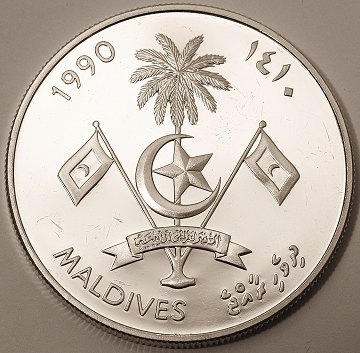 Maldiverne, 250 rufiyaa SØLV 1990 Proof - KM 81