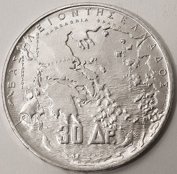 Grækenland, Paul I, 30 drachmai SØLV 1963 - KM 86 PÆN