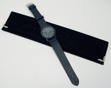 Ole Mathiesen Copenhagen, Special Edition herrearmbåndsur i sort plast med sort urskive og originalrem af læder. Ubrugt og i original ruskindsetui. Diam. 34,15 mm.