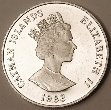 Cayman Islands, 5 dollars SØLV 1988 Proof - KM 96