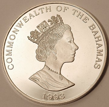 Bahamas, 5 dollars SØLV 1993 Proof - KM 170