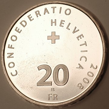 Schweiz, 20 franken SØLV 2008B Proof - *Vitznau-Rigi Bahn*