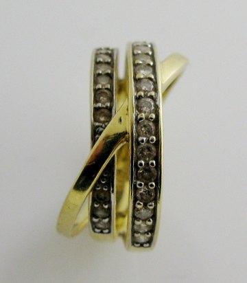 Ring af 14 kt. guld med flettet skinne, dekoreret med 28 små, brillantslebne diamanter. Str. 54, totalvægt ca. 4,7 gr.